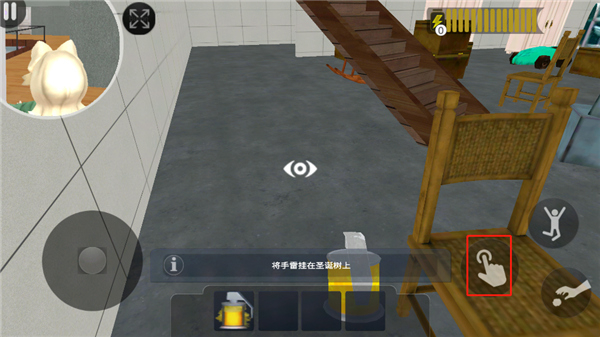 7、然后返回客厅,将手雷挂到圣诞树上;