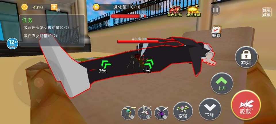 1在游戏中,玩家需要操控蚊子去攻击并叮咬各类角色。游戏场景丰富多样,其中不乏处于熟睡状态等不同状态的角色。玩家要操控蚊子小心翼翼地降落在这些角色的皮肤上。