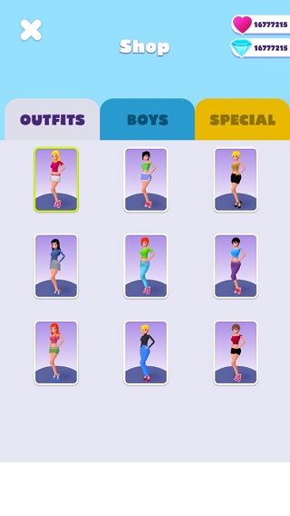 除此之外,游戏玩法还包含换装体验。在“SHOP”系统里,无论是女孩的造型,还是男孩的选项,都能全部解锁。化妆用品、美容产品、各式衣服,任你挑选。从今天起,迈出自信的步伐,走出独属于你的美丽之路吧!
