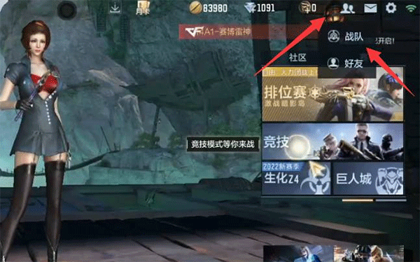 1、首先点击主界面右上角的社交系统,找到战队进入。
