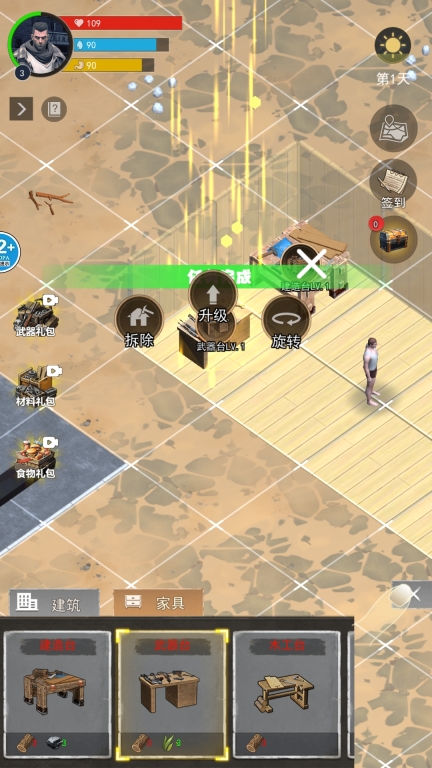 6、点击下方的【制造】选项,进入建造界面,包括建筑和家具,这里以【家具】为例,