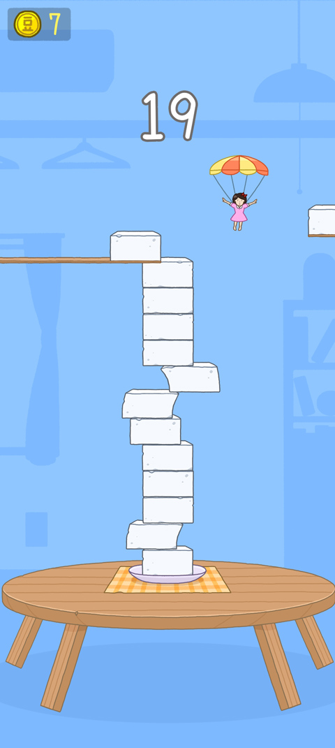 尽管游戏入门极为轻松,然而想要获取高分并非易事。玩家得操控女孩持续跳跃,以堆积豆腐块,唯有在游戏结束时,堆积的豆腐块数量越多,最终得分才会越高。