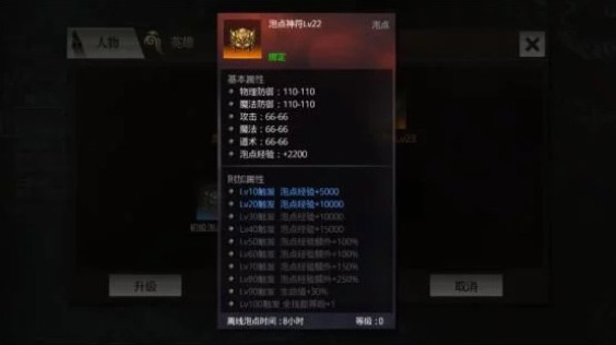 泡点神符相当于主角的挂件勋章,可以不断地升级,每升10级就会激活附加属性,让泡点经验提升,后期满级还会提升全技能等级 1,可以说相当恐怖~提升战力自然不在话下。