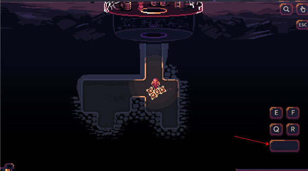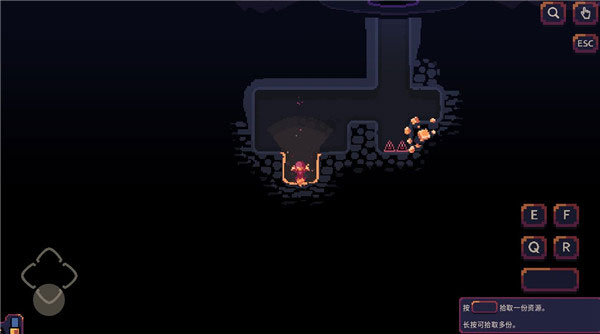2、当成功挖到矿后,点击该按键就能进行拾取操作,随后操控角色把矿石往上拉。需要留意的是,你所拉的矿石数量越多,角色的移动速度就会越慢。