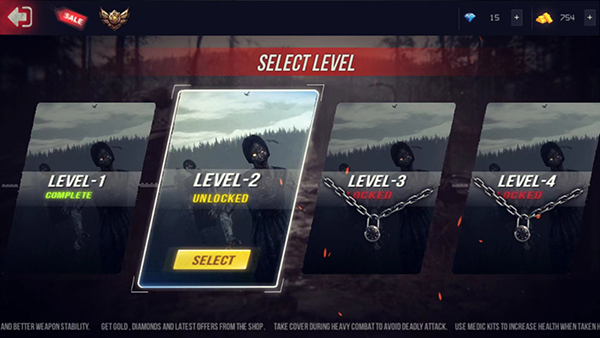 7、在当前关卡中,将所有僵尸消灭就能顺利过关,过关后可获取金币、经验、钻石等奖励,与此同时,还能够解锁新的关卡。以上便是终极战斗打击游戏僵尸模式的具体玩法。