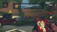 6、进入战斗界面,会听到僵尸的叫声,注意观察你的四周,通过射击或者扔雷,把所有的僵尸消灭,