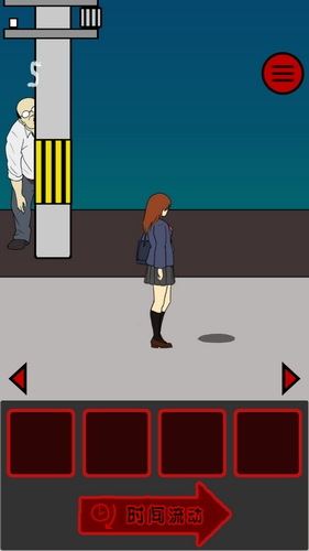第一关:非常简单,妹妹你大胆的往前走,莫回头~等痴汉从电线杆出来后,把猪头放他前面让他吃就可以安全回家了。