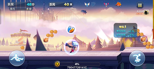 5、雷霆领主还可以搭配圣域女王、白骨夫人、曙光女神等角色,利用超级奖励关卡获得高分。搭配这些角色都比较适合长跑,后期得分比较厉害。在超级奖励关卡内,不要一进入就释放技能,如果奖励关卡进入到一半,或者还有些距离才会进入到奖励关内,这个时候玩家最好卡滑翔飞行一段时间。