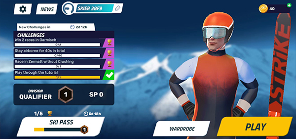 2、在雪地上纵横驰骋,成为滑雪大师。无论是初始的挑战,还是激烈的对战比拼玩法,都能让玩家尽情投入游戏。
