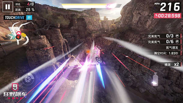 7、氮气基本要面对上板和车速过低时才用,所以不要气一满就喷,如果你氮气满了,赛道前方有新的氮气瓶,别吝啬,紫喷加速吃完刹车。