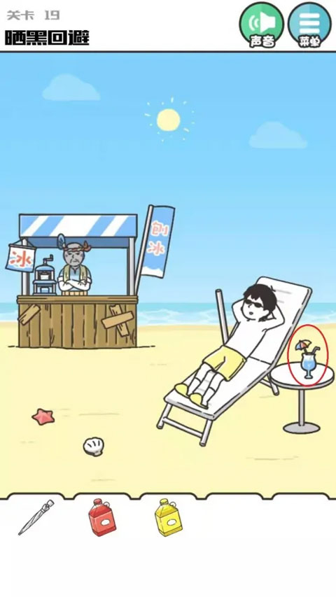 注意,在操作过程中,太阳伞会晒黑主角4次,总共4次机会。