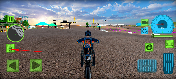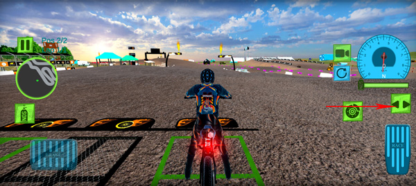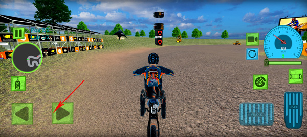1、开启越野摩托模拟器的最新版本,左下方的两个按键,分别用于操控摩托的左右方向。