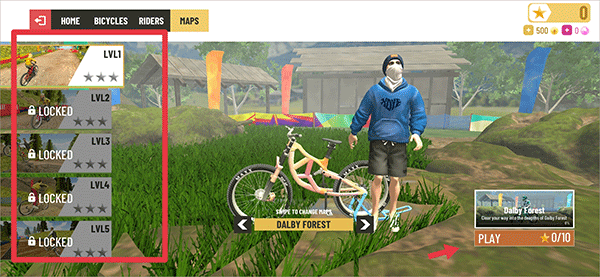 4、这里的关卡设置丰富多样,风格各不相同。通过挑战各类赛事,助你勇夺自行车越野运动的冠军宝座。