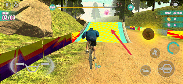 4、了解基础操作方式后,就能正式开启游戏啦。骑行过程中,驾驶自行车通过加速道,能让你的速度大幅提升哦。
