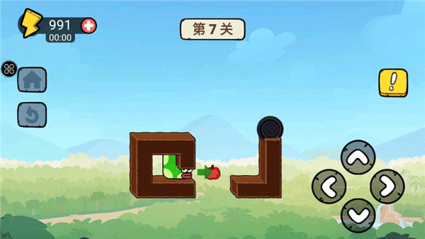 首先向前行进,抵达第2个空格位置后向上走,直至小蛇掉落。小蛇掉落后,向左行进便能够吃到苹果。随后朝着黑洞的方向前进,完成挑战。