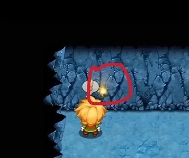 3、到了第三层一直向下走,敲掉挡路的石头,再向右边走到底,出来后走左边到达第四层。