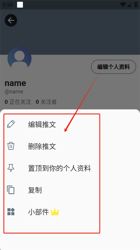 6、点击三个点按钮,可以进行编辑和删除推文等操作