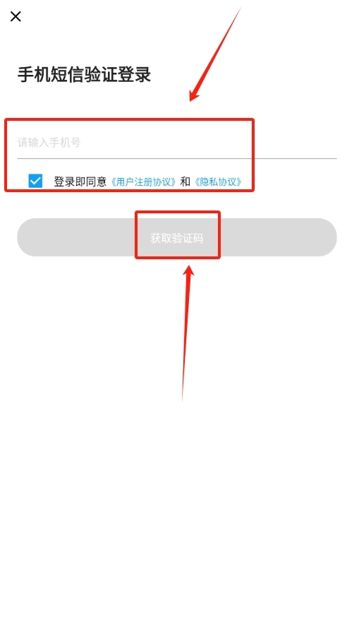 2、进入软件首页,找到手机号输入栏,在里面准确填入自己的手机号码,填好后点击旁边 “获取验证码” 的按钮 。