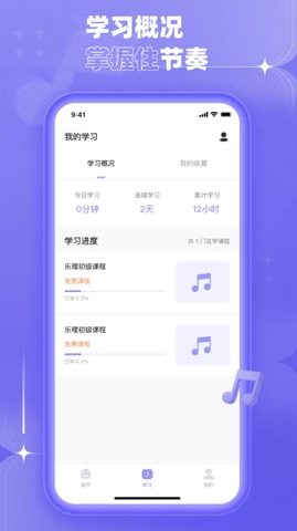 3、课程内容丰富多样,涵盖了乐理基础、和弦、音程等知识点,用户可以根据自己的需求进行学习。