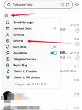 在并登录Telegram客户端后,点击右上角的“更多”选项。