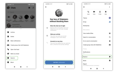 您可以限制他们,而不是阻止一个人。 这意味着对话已从您的聊天列表中移出,他们无法看到您何时处于活动状态。