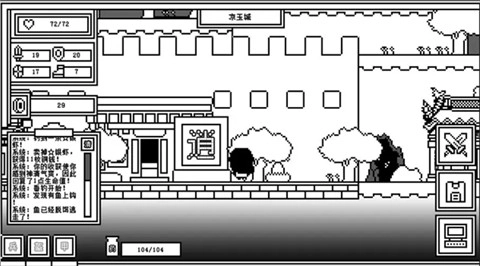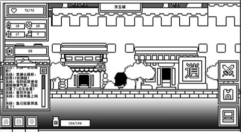 如下图所示,当前人物所站的地方是封魔塔在凉玉城的入口,点击屏幕最右边的三个大键的第一个也可以进入封魔塔;左手边坐在地上的那个老头是传说中会降龙十八掌的丐帮帮主--粥星星!