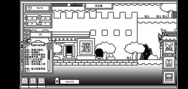 又如下图所示,你以为你看到的这个钓鱼台就是钓鱼用的?其实,的确是钓鱼用的,但他还可以钓虾,他还可以钓属性,他甚至还可以钓装备!最重要的还是钓钱,众所粥知,氪金是不可能氪金的,这个游戏是不可能需要氪金的(实际也味可滋,毕竟是要恰饭的嘛,但我更希望这个游戏能做买断制,因为个人觉得这种游戏应该不联网吧?这个,鹅,这个,应该不联网,嗯。)在封魔塔里打小小怪和大大怪都是需要投币摇脑斧机的,因此,铜币也就是游戏的根本。所以这个钓鱼台能满足各位爷的一切需要,尽管这个钓鱼台偶尔会抽风,偶尔还变.态,其他的请尽情享用~