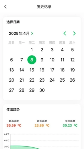 3、这种数据可视化的方式,让用户不仅能看到当前的体温,还能追踪到过去的体温变化。