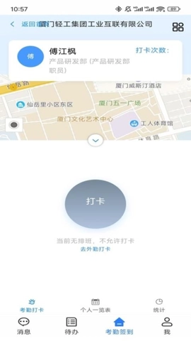 1、轻之云在考勤管理方面,推出了一键签到打卡功能,用户仅需轻轻触碰屏幕,就能记录上下班的考勤状态。