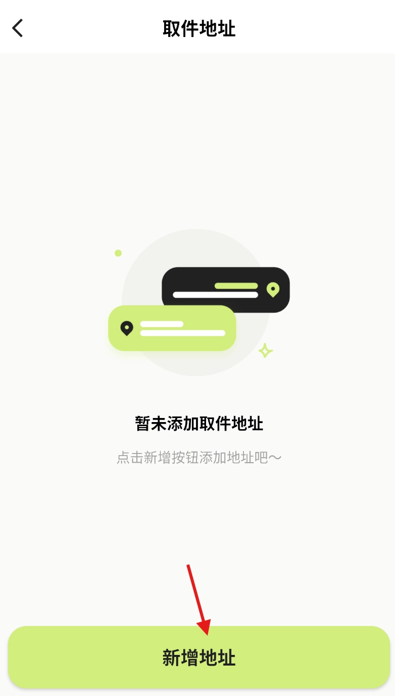 3、进入取件地址界面,在页面中找到“新增地址”按钮并进行点击操作。
