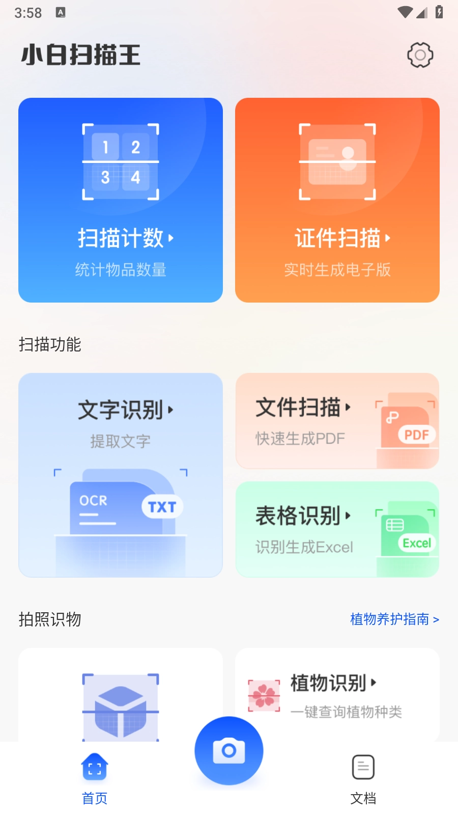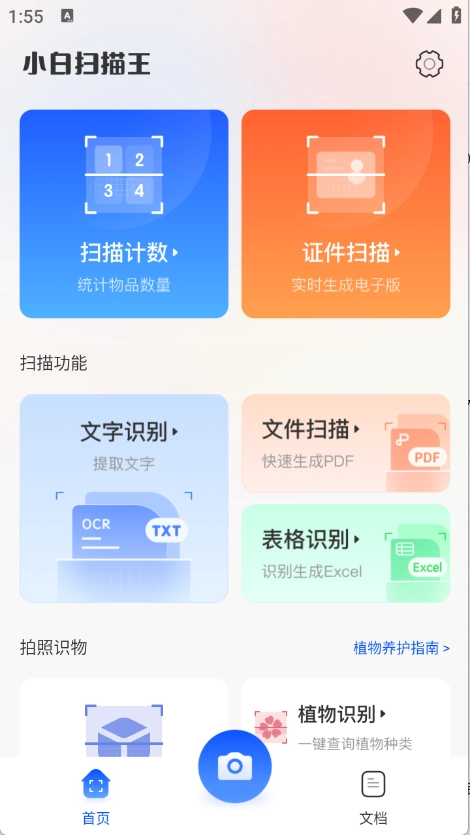 2.进入到首页之后汇集了很多的扫描功能,不管是扫描计数、证件扫描以及表格扫描等都有