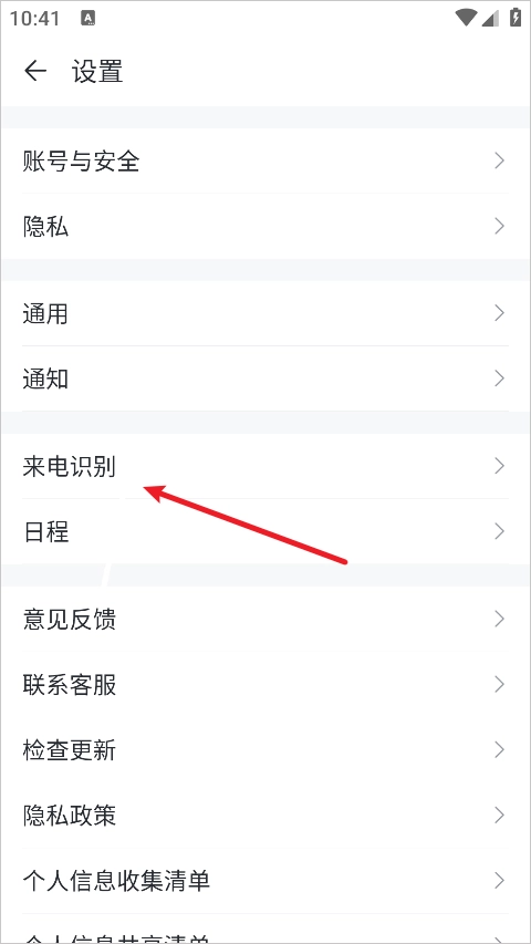 2、在设置菜单中找到并点击“来电识别”选项;