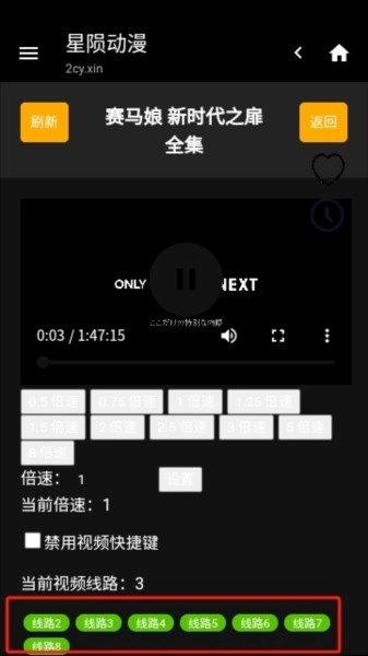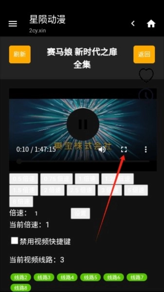 4、在播放页面会展示支持该资源播放的线路,如果当前线路有问题可以直接进行切换