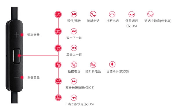 集成了fiil耳机按键,触控以及线控的功能说明,让你瞬间玩转耳机