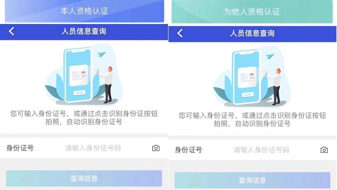 第三步:在输入框中录入身份证或点击“照相机”上传身份证图片后点击“查看信息”。