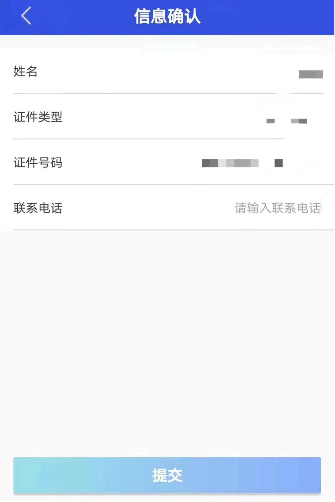 第五步:信息确认无误,点击“提交”按钮进行人脸识别认证。