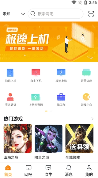 2、注册成功之后,登录进行实名认证。实名认证通过之后,即可扫描吧台二维码进行上机了。除了扫码上机以外,去上网还有很多其他功能。比如预订网咖,手机下机等~
