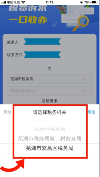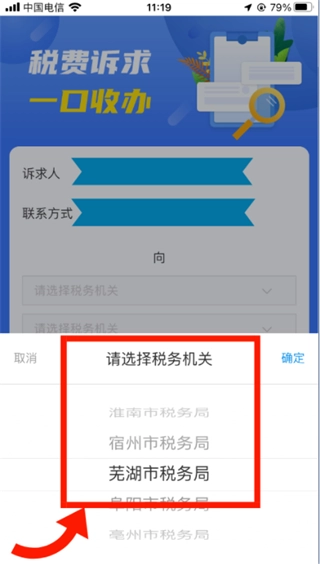 3、选择税务机关部门