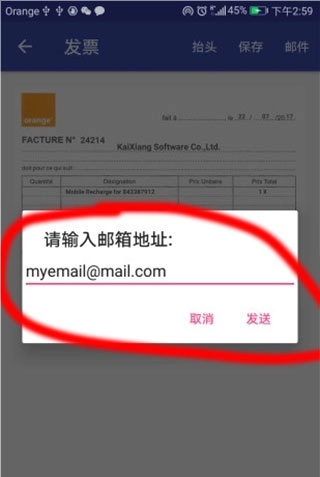 3、点击发票可以将它发送至用户的邮箱进行保存