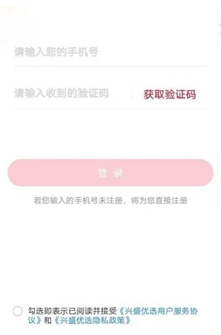 1、首先在本站兴盛优选,然后直接通过手机号登录;