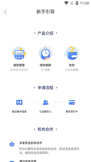 4、在新手引导界面当中,可以学习到具体的借款流程;
