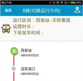 4、切换运行方向后,还可查看详细的起点至终点所经站点信息。