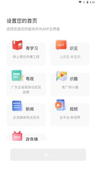 4、点击粤学习可以切换版块