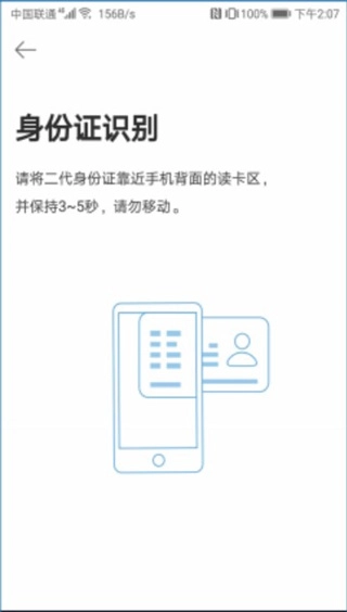 2、使用NFC功能读取身份证或者输入身份证信息进行验证;