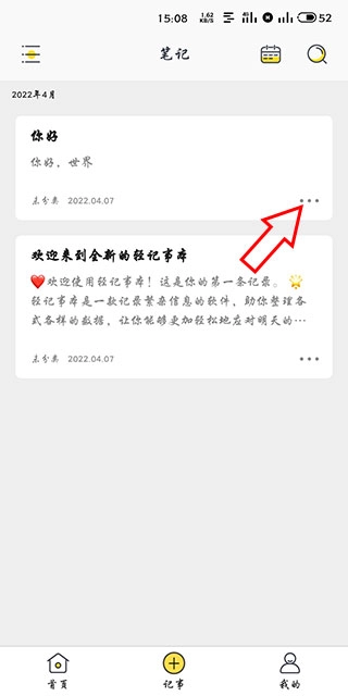 5、回到首页,点击你想要的分类的记事的右下角的“...”按钮
