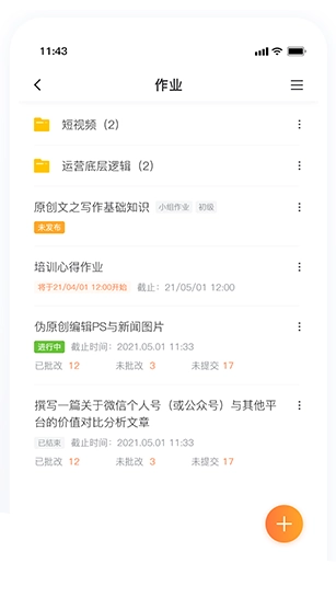 5、在“我的”页面中,点击“作业”可以查看每节课后的作业以及需要用到的素材
