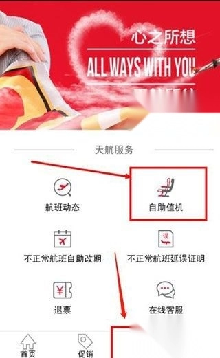 天津航空最新版怎么值机选座