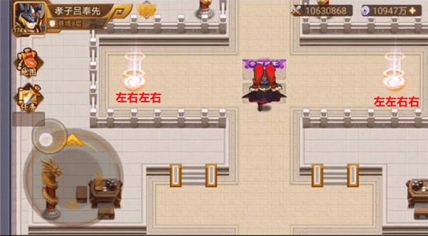 八、第八层,走位很简单,就按图所示进入阵眼走位即可。左边打败天龙,右边打败地蛟后才能见到守阵大将庞统,将其打败,可获得庞统专属和功勋值。