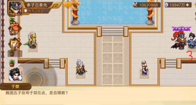 二、第二层,圆阵,声东击西,南辕北辙。先去和右边对话,然后,去到左边,再去北方,再打中间的。