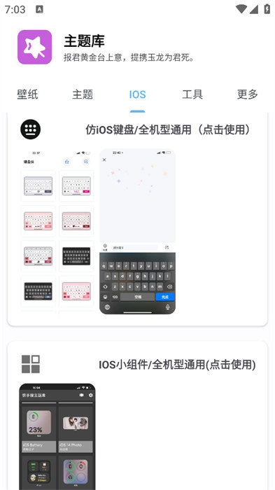 主题库安卓仿苹果是一款人气颇高的仿IOS主题应用,适配多个品牌的安卓手机进行主题美化,安卓用户能够体验到全新的苹果主题风格,从图标包到状态栏都与IOS一致,欢迎感兴趣的朋友使用!